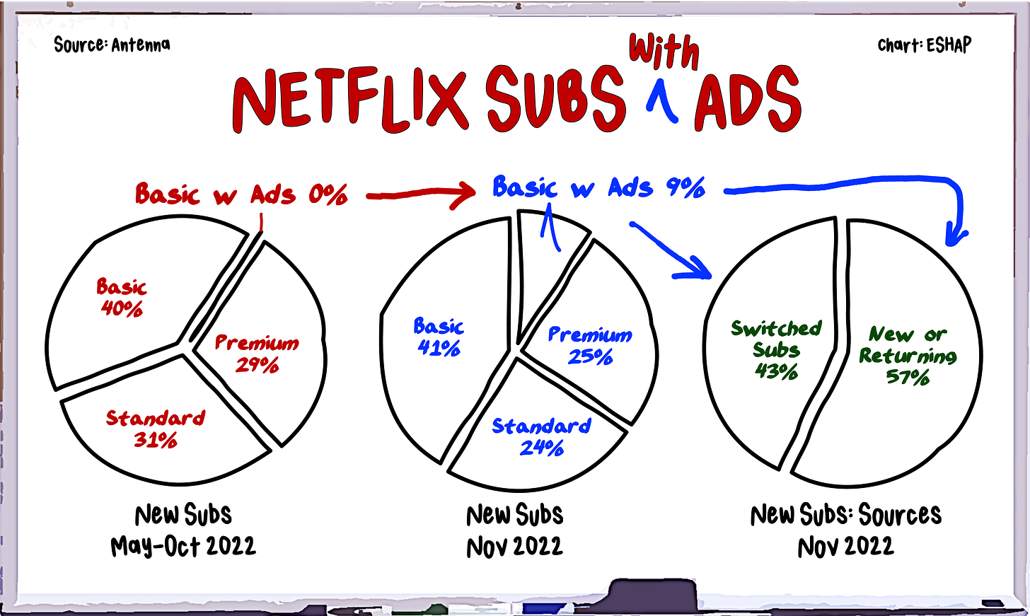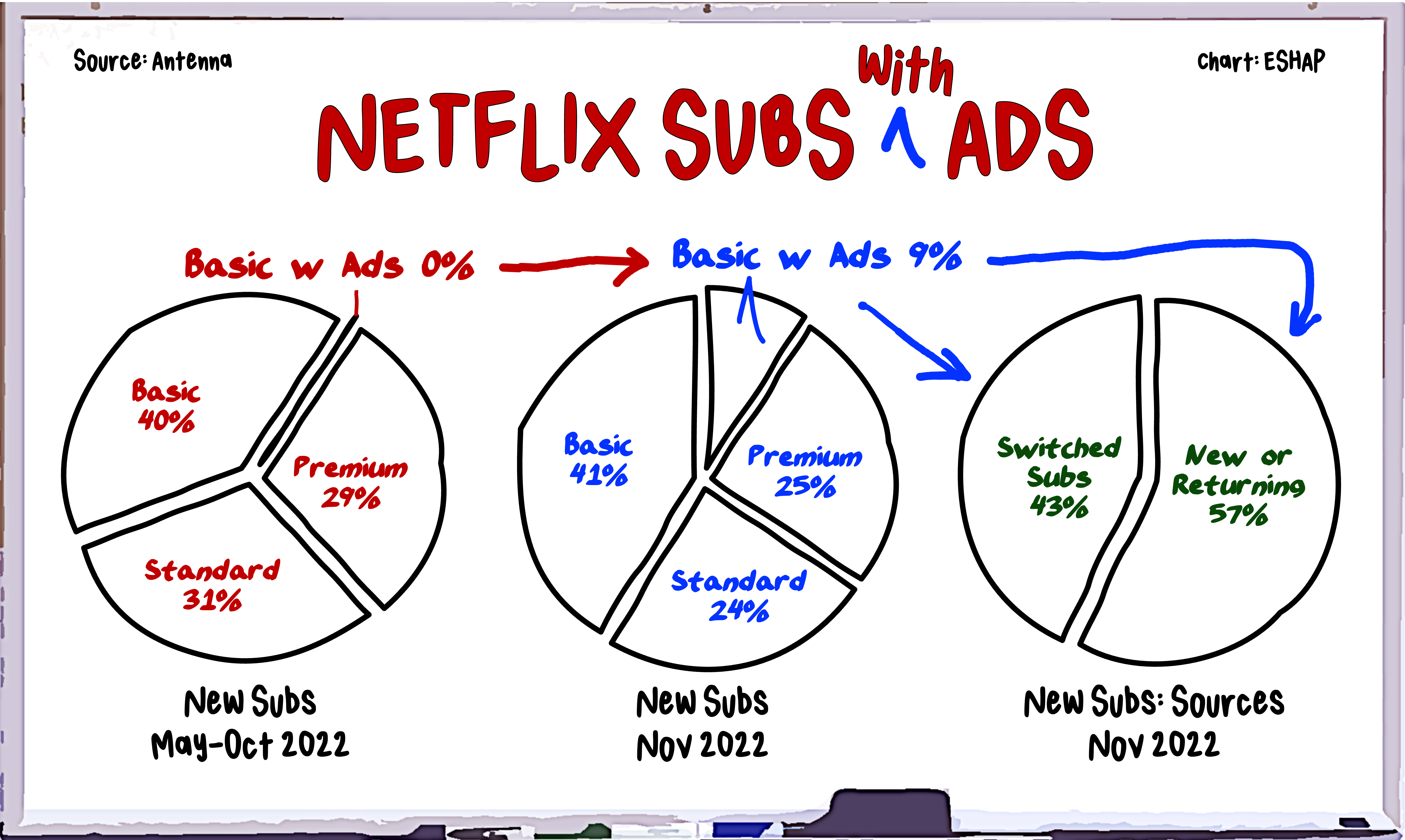 Above you see data released this week by Antenna, which shows that only 9% of all sign-ups in November were for the Netflix ad tier. One month in, just 0.2% of all Netflix subs on their ad tier.