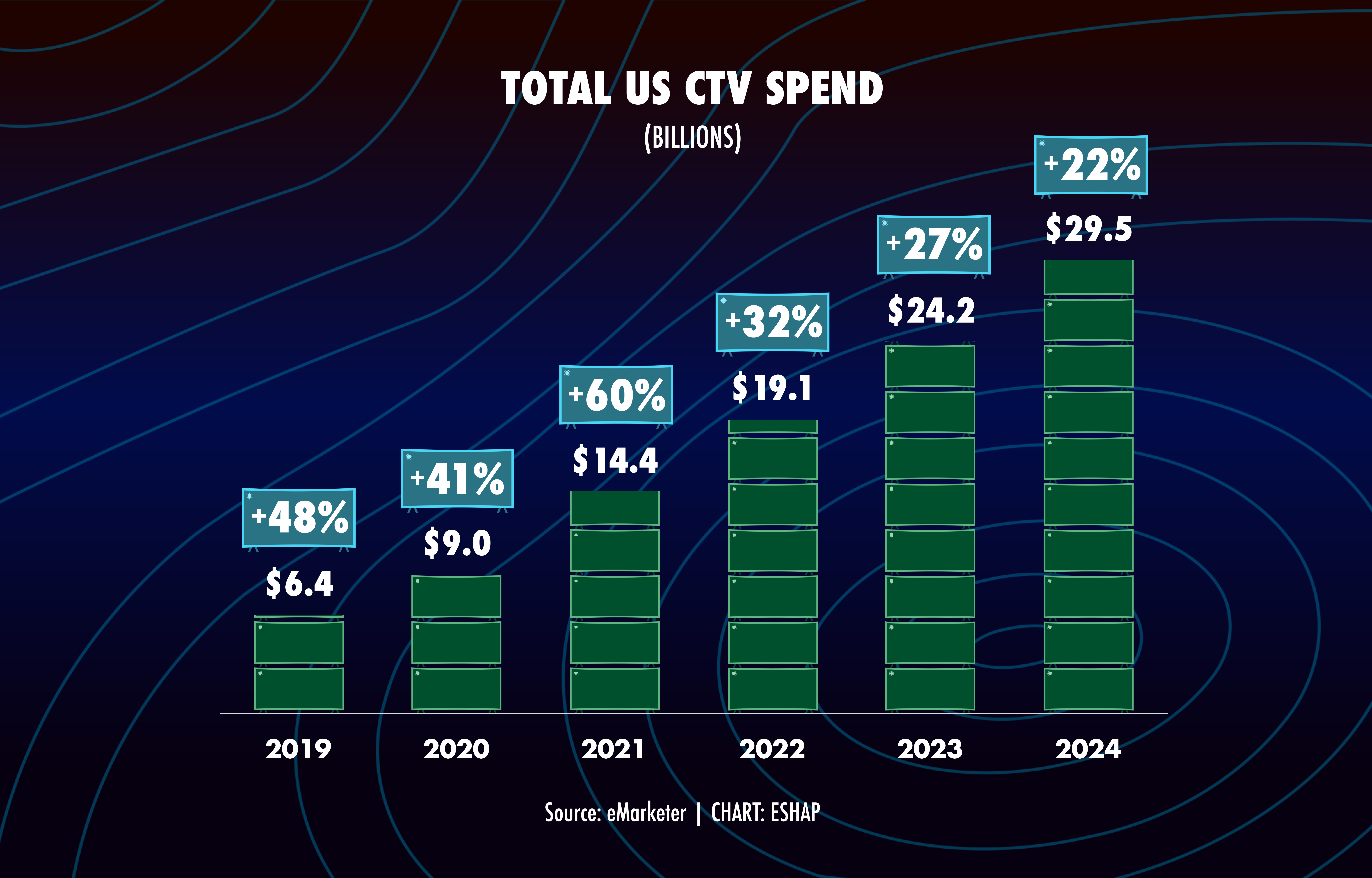 These digital-heavy deals from OG TV players like Disney and NBCU track the movement of the entire industry – where CTV spending is projected to grow by 33-38% this year, likely going over $20 billion in the US.