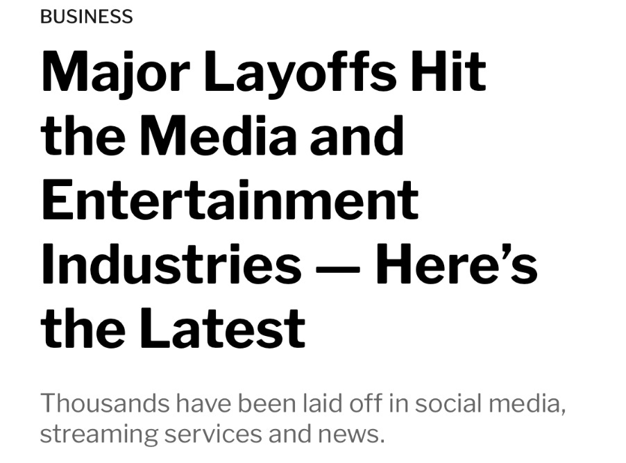 Business models once thought indelible (Meta, YouTube, Amazon’s e-commerce, Gaming) have proved extremely delible. Mergers once thought additive now seem substractive (Disco Bros). The Streaming Wars have turned into subscription fatigue. The Ad Biz has soured into an Impression Recession. The unrealistic growth curves at the core of many business models have turned into the dangerous curves of an economic right-sizing. And in almost all cases the cost will be jobs, tens and tens of thousands of them, across media and tech.