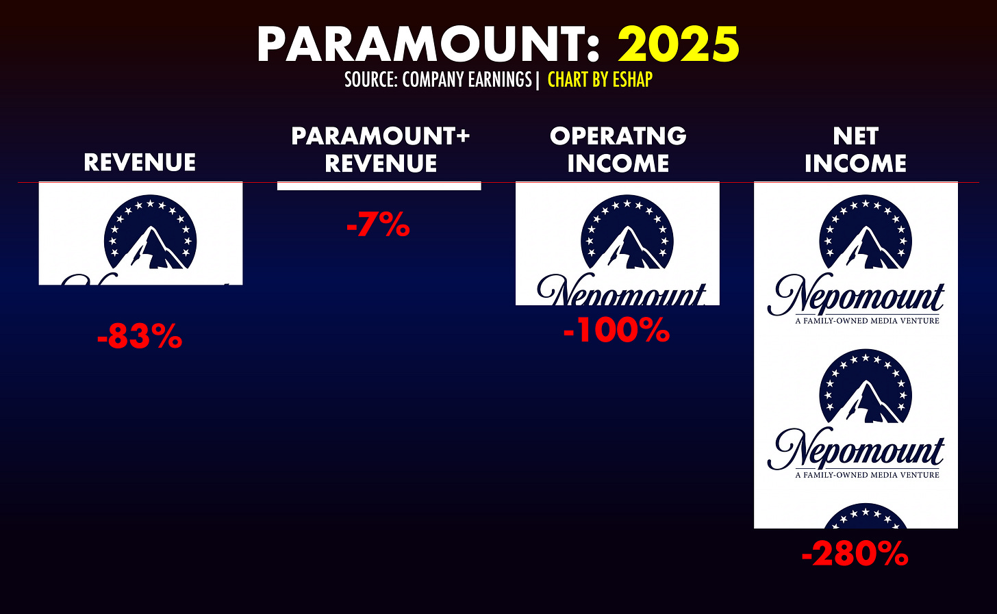 Playback speed×Share postShare post at current timeShare from 0:000:00/0:00Transcript2412Substack LIVE: Paramount + Disco Bros!LIVE NOW ON DEMAND - show starts at 2 min 32 secsEvan Shapiro and Marion RanchetFeb 27, 20262412ShareTranscriptThank you Machine Cinema, Jean Carucci, Elena Neira, Bill Cunningham, Alex Stolz, and many others for tuning into my live video with Marion Ranchet! SLIDES FROM THE SHOW:THE NEW LOGO!THE TITANICTHE ICEBERGSTREAMING’S SINKING SHIPMedia War & Peace is ENTIRELY reader-supported. PLEASE consider joining our community as a paying Peacenik.SubscribeDiscussion about this videoCommentsRestacksMedia War & PeaceReports from the War for Our Attention from Media Cartographer Evan Shapiro.Reports from the War for Our Attention from Media Cartographer Evan Shapiro.SubscribeListen onSubstack AppRSS FeedAppears in episodeEvan ShapiroMarion RanchetRecent EpisodesNetflix is out of ideasFeb 20 • Evan Shapiro and Marion RanchetEARNINGS LIVE! (ON DEMAND)Feb 12 • Evan Shapiro4Q EARNINGS LIVESTREAM - RECORDED!Feb 5 • Evan Shapiro and Marion RanchetTHE NEW, NEW NEWSJan 31 • Evan ShapiroNEXT UP: THE AFFINITY ECONOMYDec 16, 2025 • Evan ShapiroIt’s ALL The Creator Economy NowJun 16, 2025 • Evan ShapiroCREATE OR...Mar 3, 2025 • Evan Shapiro