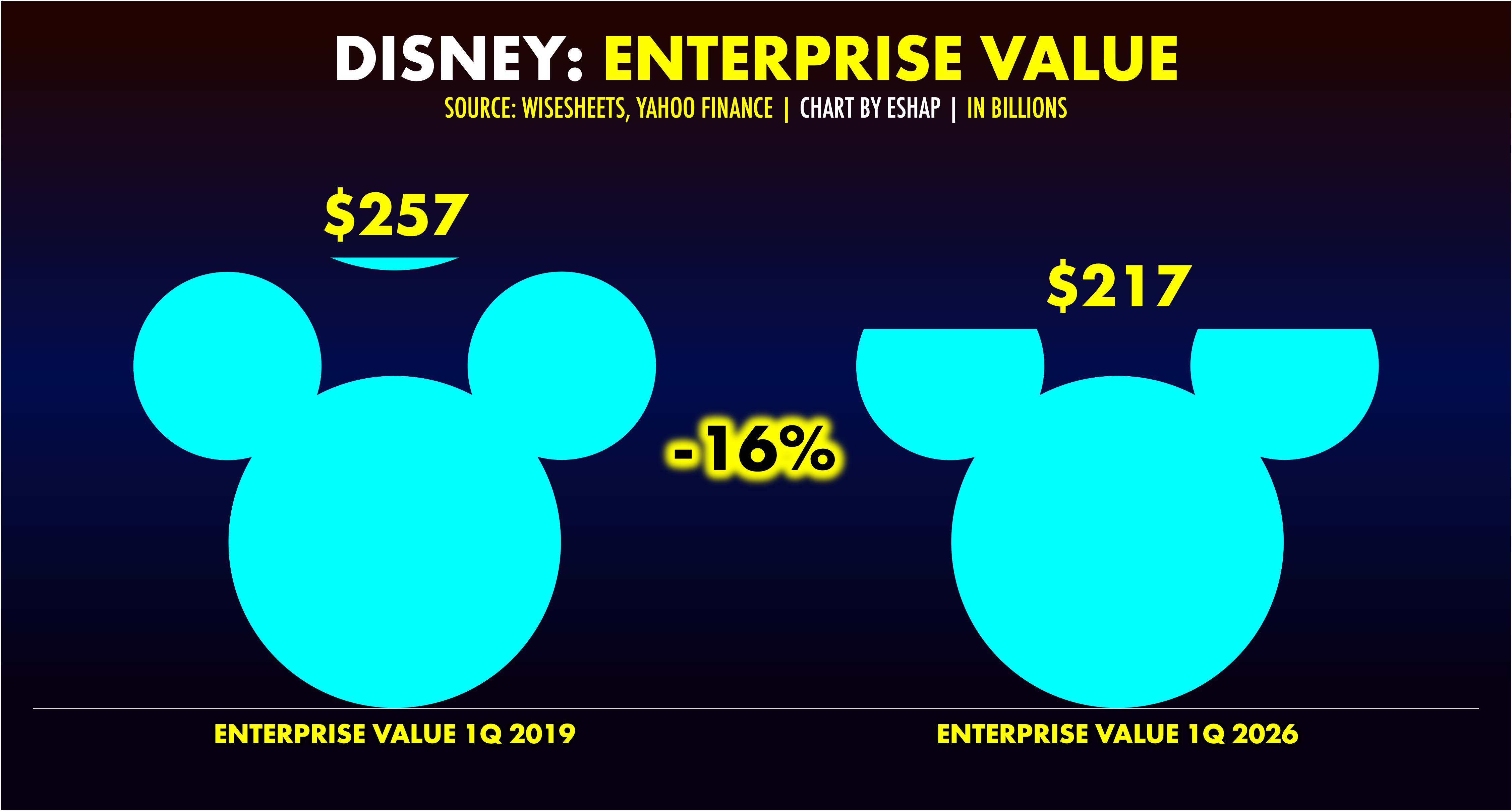 Meanwhile, Disney fell directly into the Industrial Trap, with a ball and chain of debt, running on a never-ending hamster wheel of greater and greater scale.