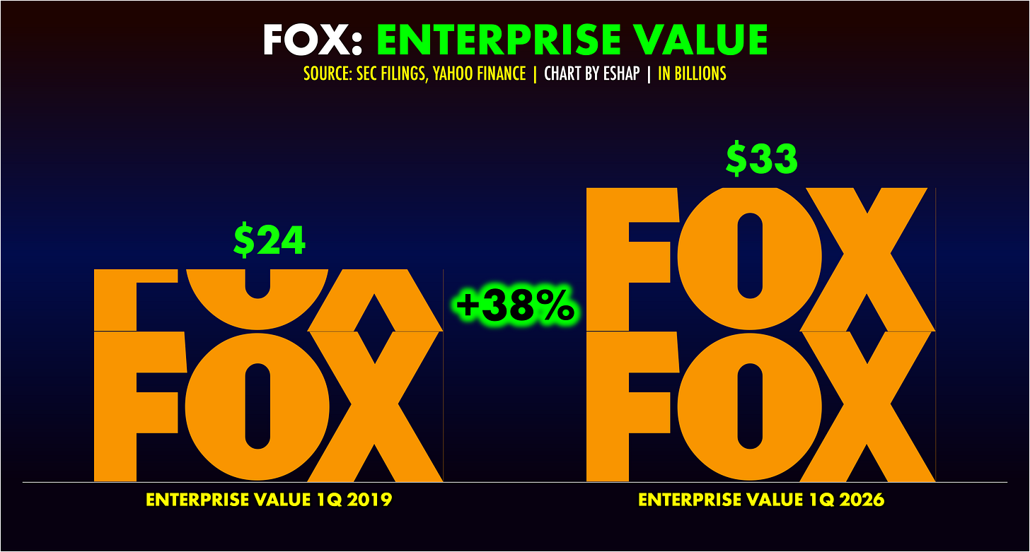 Yes, Fox held onto some truly legacy properties: Broadcast and Cable News. But, since the Disney sale, they are using the current cash from those businesses, and the sale, to fund a fan-focused creator-mindset portfolio with a billion-dollar balance sheet: