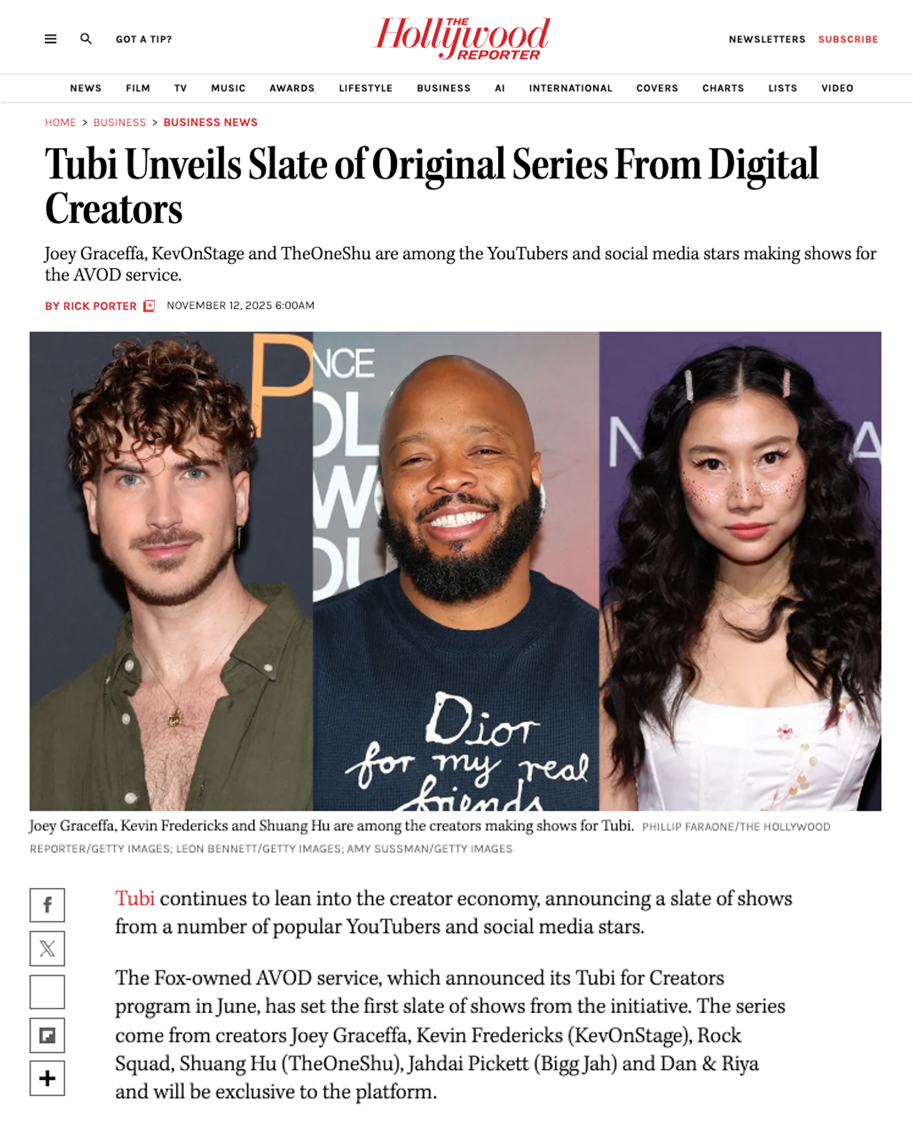 In this case however, Bloom and Tubi hit the ground running, signing deals with some of the biggest creators on the planet…