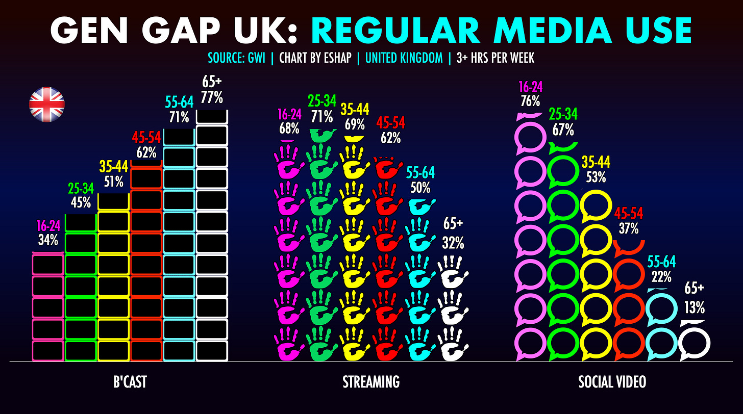 Brits who are Millennials-and-younger now make up 55% of the UK population and 38% of the British workforce. And their media habits are becoming the UK norm. That is making everything on TV far more competitive and complicated than ever.