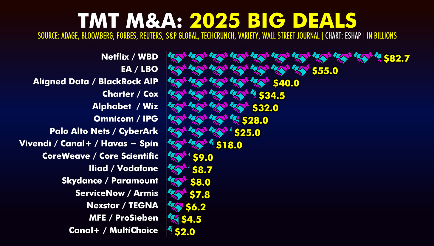 Of course it’s mandatory to discuss WBD, Netflix, and the Ellisons (oh my!). But we zoom out to talk about how a red hot Media M&A market might actually create a maelstrom of mishegas.